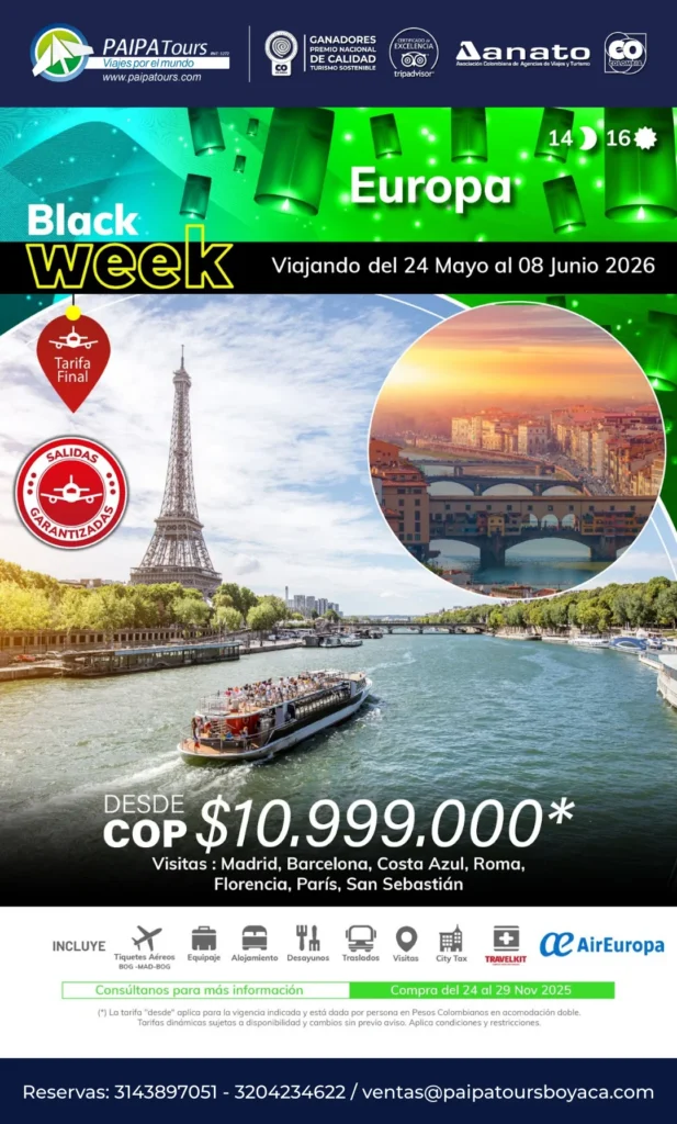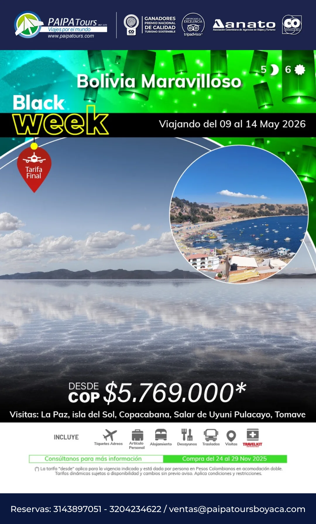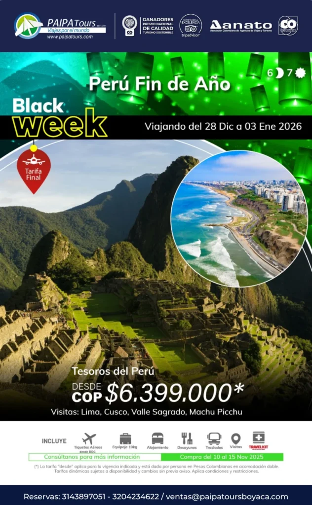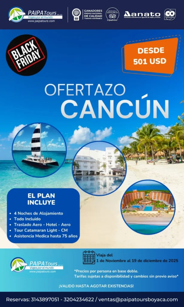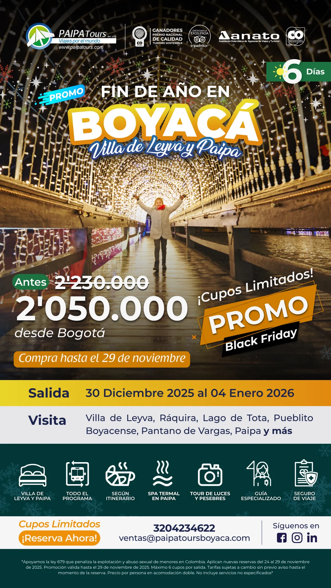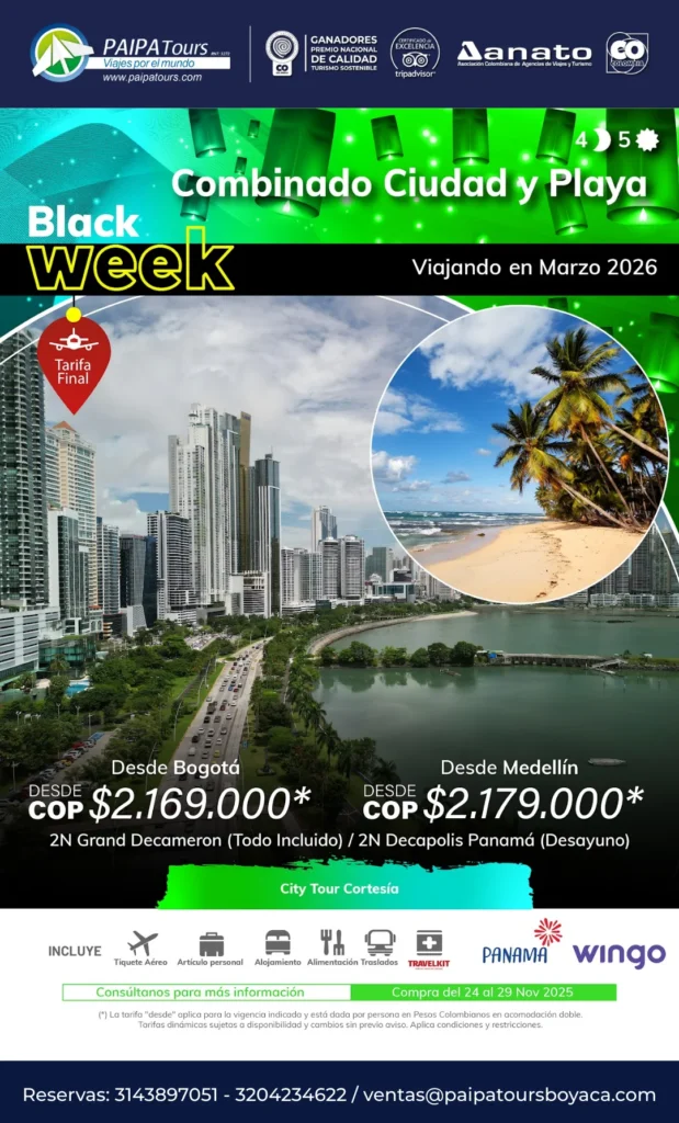 Aprovecha nuestras ofertas Black Friday y celebra el Fin de Año 2025 con los mejores planes turísticos por Colombia y el exterior.