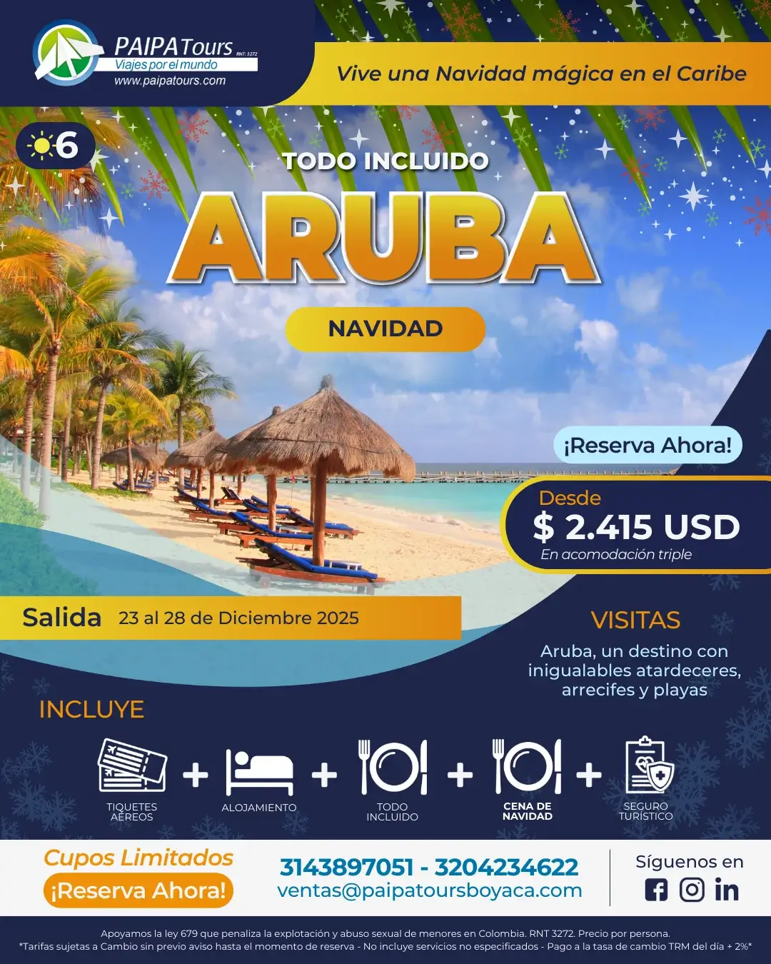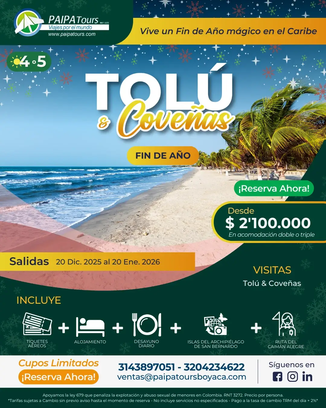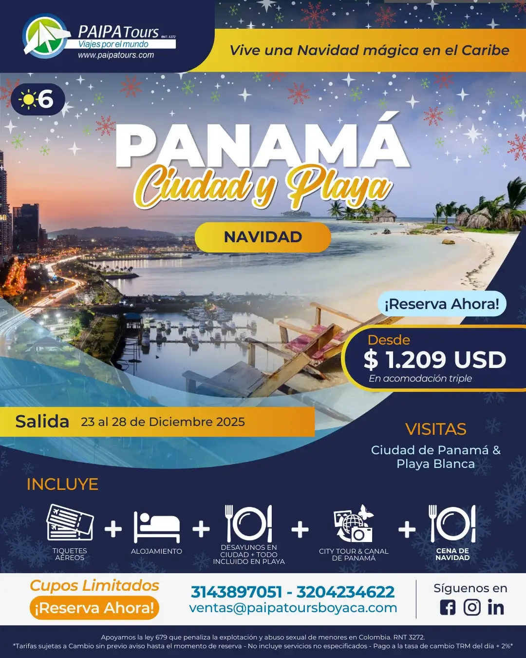 Nuestros paquetes de Fin de Año en el Caribe, México y Estados Unidos incluyen vuelos, traslados, alojamiento en hoteles seleccionados, actividades turísticas y experiencias festivas para recibir el 2026 como lo imaginaste. Con Paipa Tours, tu Fin de Año estará lleno de sol, diversión y momentos que recordarás siempre.